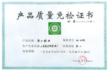 产品质量免检证书